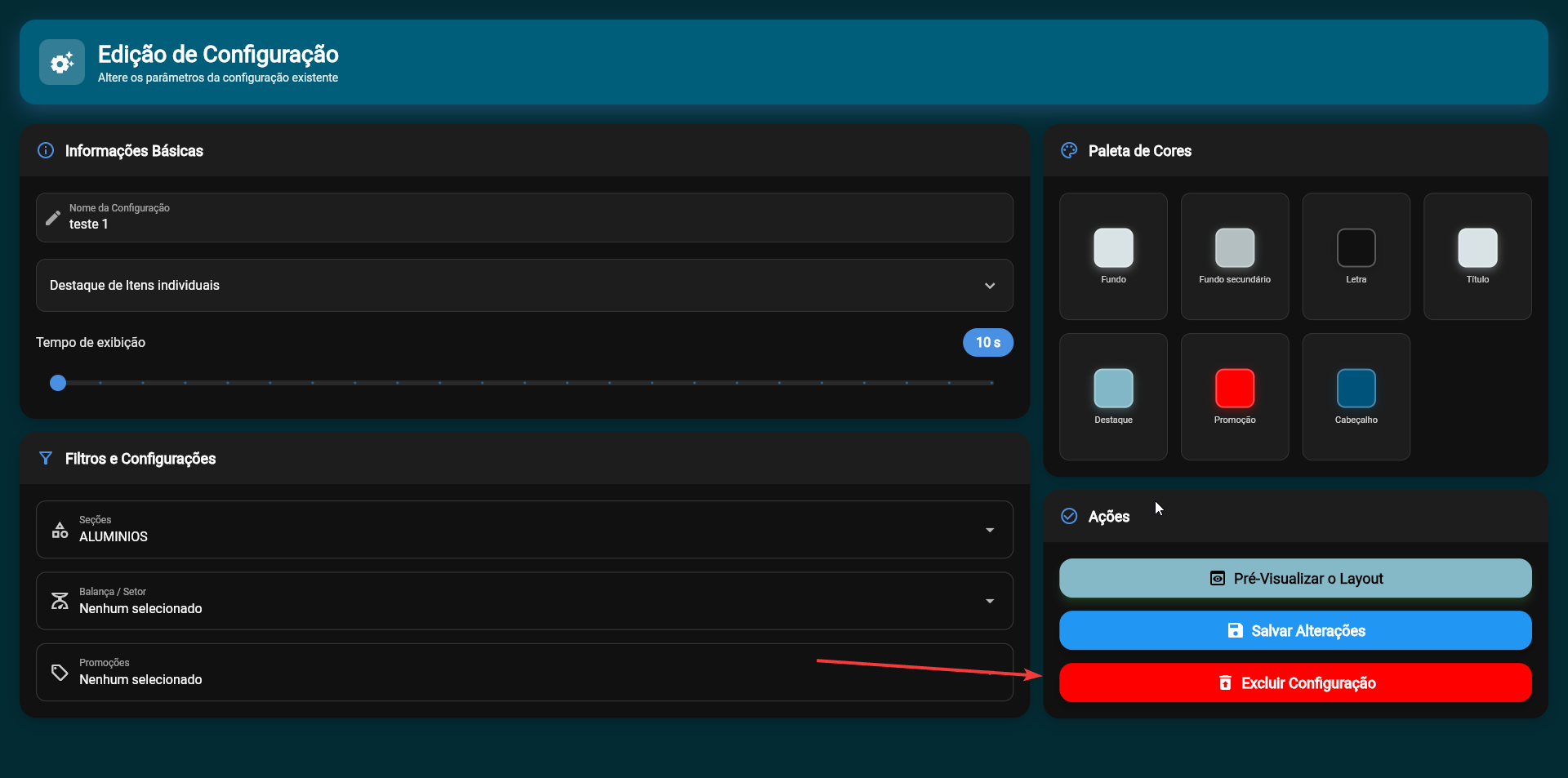 2. Também é possível excluir entrando na configuração para editar e clicando no botão de excluir Configuração.