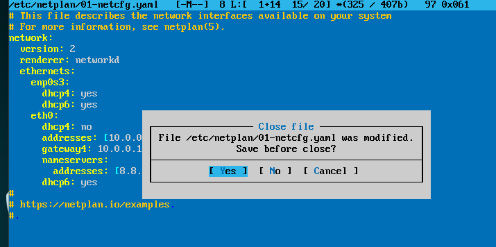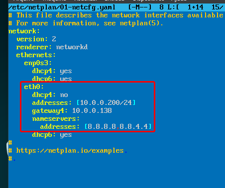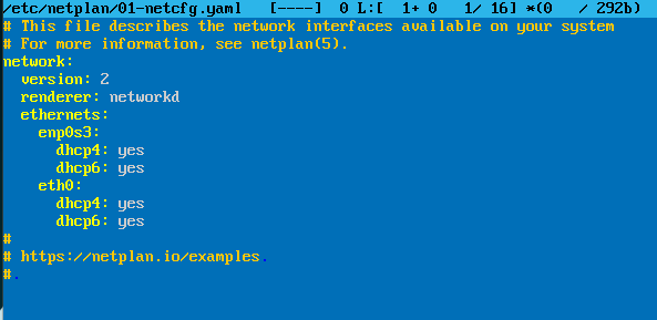 DIGITE O COMANDO " mcedit /etc/netplan/01-netcfg.yaml " ---- abrira a tela abaixo