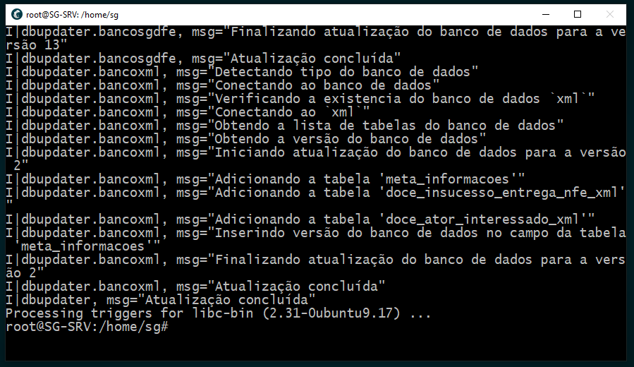 - " sudo -u sgdfe ./sgdfe_dbupdater " PARA ATUALIZAR O BANCO COM A NOVA VERSAO
