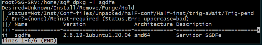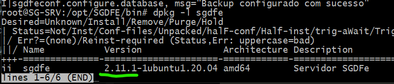 " dpkg -l sgdfe " VER A VERSAO SGDFE