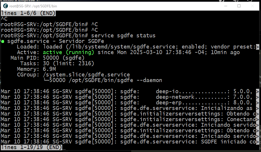 " service sgdfe status " VER STATUS SERVIÇO, TEM Q ESTAR ACTIVE RUNNING EM VERDE
