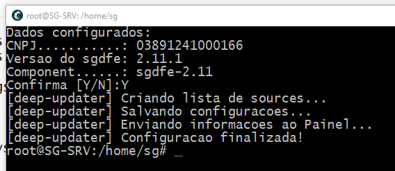 - " deep-updater configure-product sgdfe " E DIGITE CNPJ DO CLIENTE > ENTER