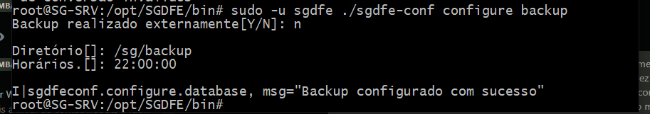 - " sudo -u sgdfe ./sgdfe-conf configure backup " (COLOCAR N)