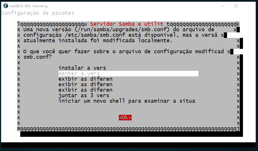 NESSA TELA ESCOLHER OPÇAO INSTALL SG-SRV UBUNTU