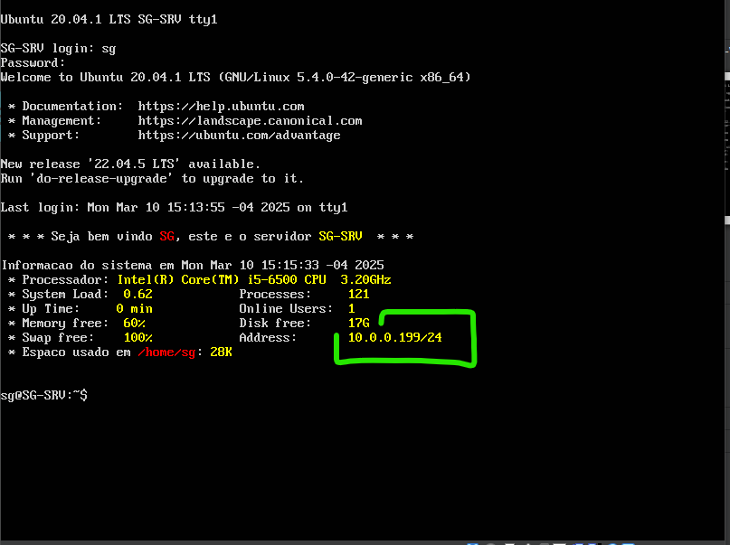 NESSA TELA, CARREGARA ALGUMAS INFORMAÇOES, UMA DELAS É O IP, " 10.0.0.199 "